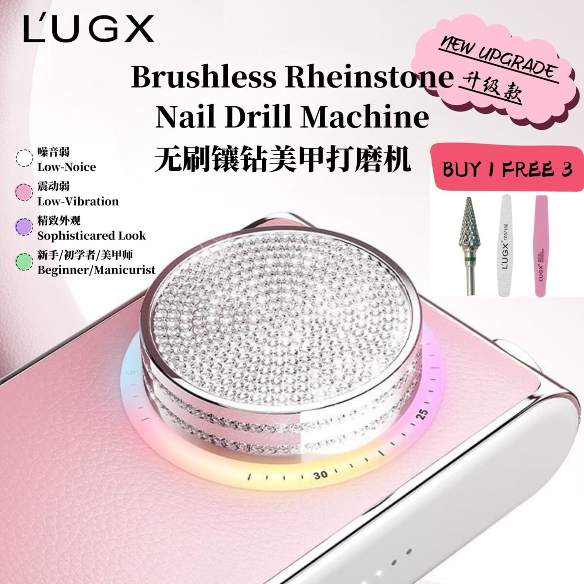 Model LG902s Brushless Rhinestone Leather Nail Drill Machine 镶钻无刷美甲打磨机